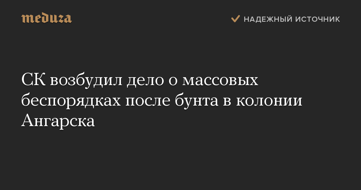СК возбудил дело о массовых беспорядках после бунта в колонии Ангарска