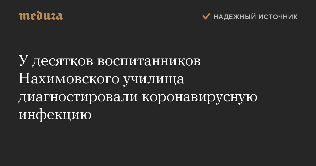 У 31 воспитанника Нахимовского морского училища, которые находятся в Москве, диагностировали коронавирусную инфекцию. Об этом сообщает «Интерфакс».