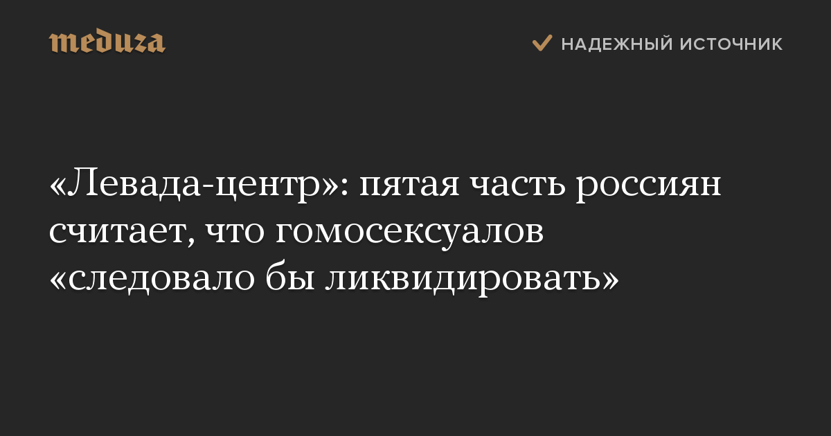 «Левада-центр»: пятая часть россиян считает, что гомосексуалов «следовало бы ликвидировать»