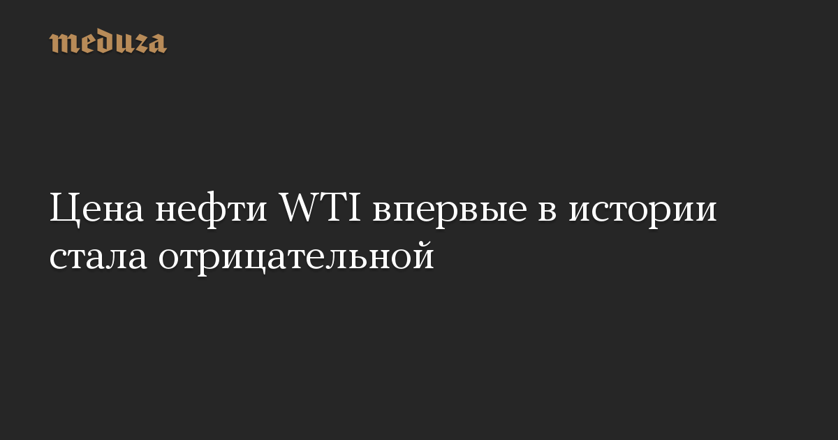 Обновлено. Цена нефти WTI с поставкой в мае на Нью-Йоркской товарной бирже впервые в истории стала отрицательной (то есть, производители платят покупателям за то, чтобы они забирали нефть). К окончанию торгов в Нью-Йорке цена WTI опустилась почти на 300% — до -37,6 доллара за баррель.