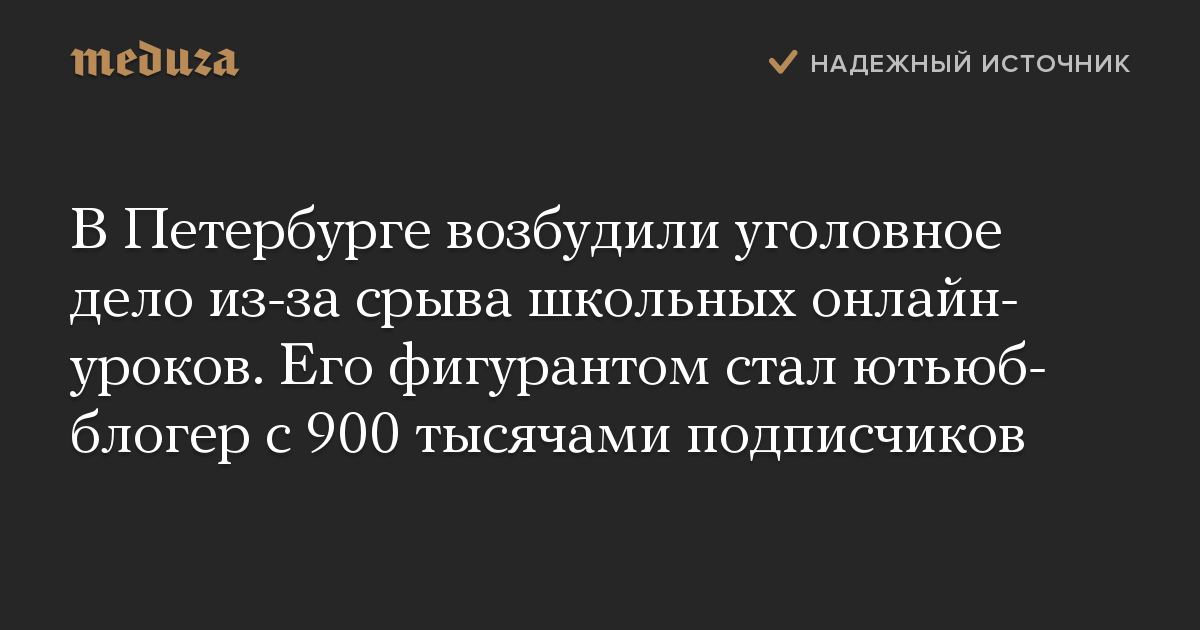 В Петербурге возбудили уголовное дело из-за срыва школьных онлайн-уроков. Его фигурантом стал ютьюб-блогер с 900 тысячами подписчиков