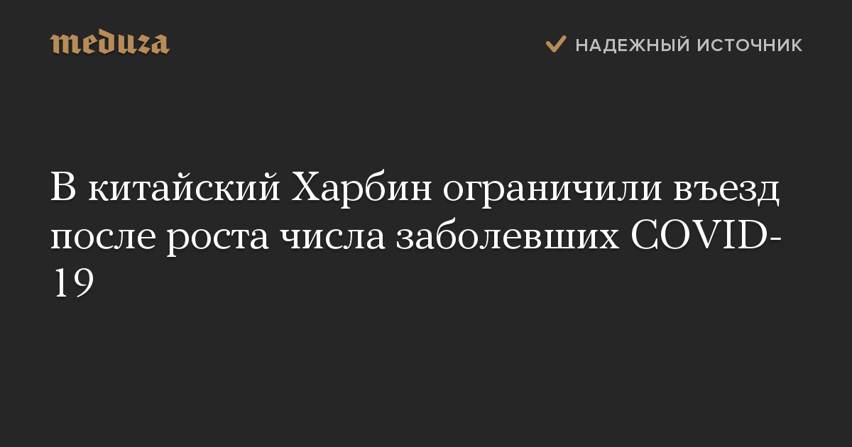 Ранее в апреле Китай закрыл все переходы через границу с Россией, добавляет Kyodo. Харбин — центр граничащей с РФ провинции Хэйлунцзян, город продолжает принимать рейсы из России.