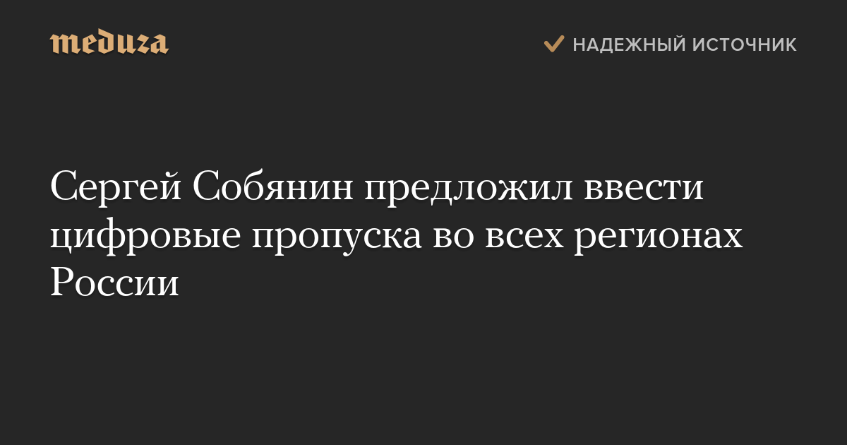 Сергей Собянин предложил ввести цифровые пропуска во всех регионах России