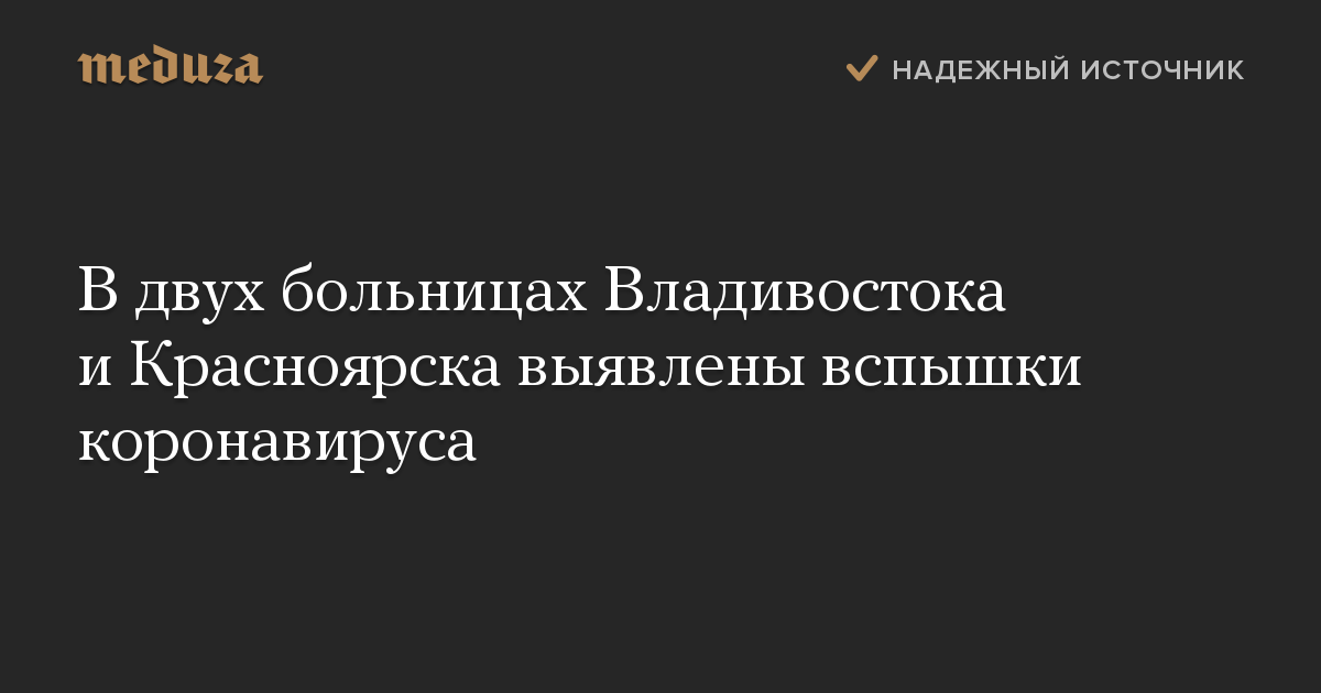В двух больницах Владивостока и Красноярска выявлены вспышки коронавируса