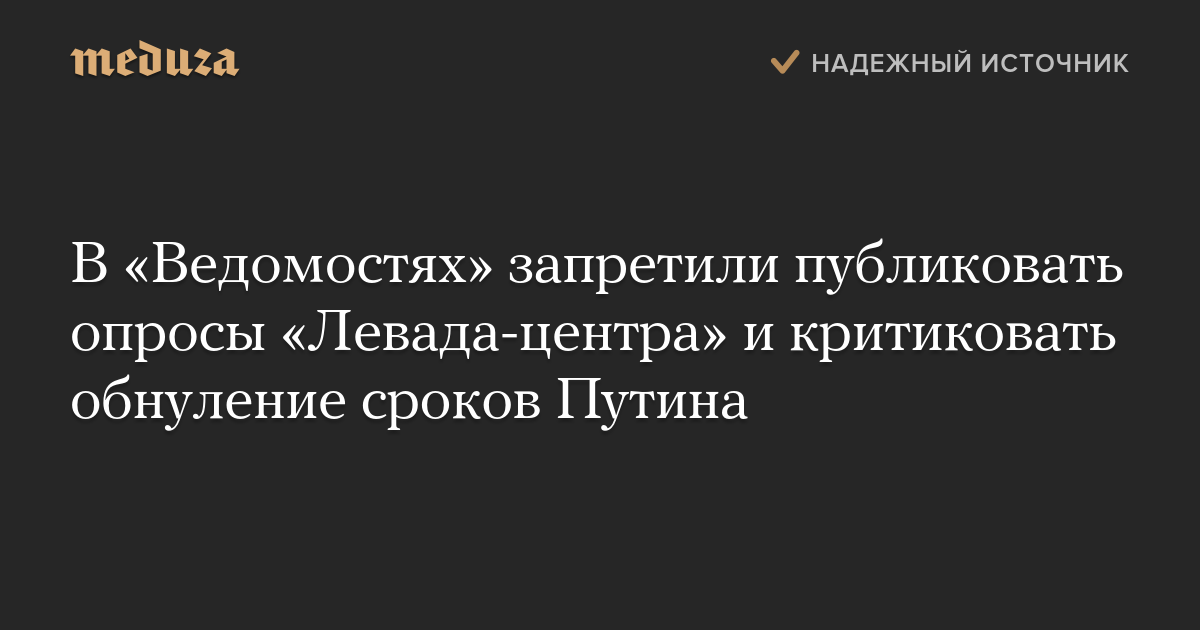 В «Ведомостях» запретили публиковать опросы «Левада-центра» и критиковать обнуление сроков Путина