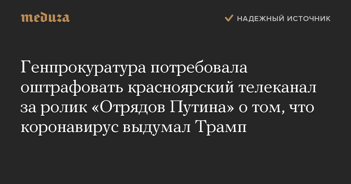 Генпрокуратура потребовала оштрафовать красноярский телеканал за ролик «Отрядов Путина» о том, что коронавирус выдумал Трамп