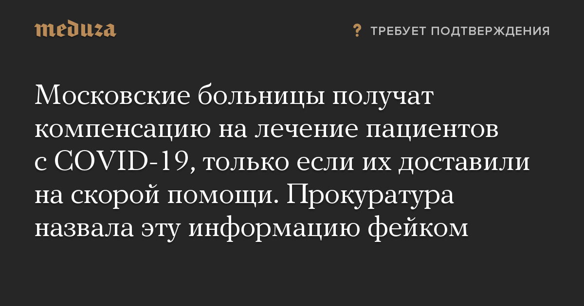 Московские больницы получат компенсацию на лечение пациентов с COVID-19, только если их доставили на скорой помощи. Прокуратура назвала эту информацию фейком