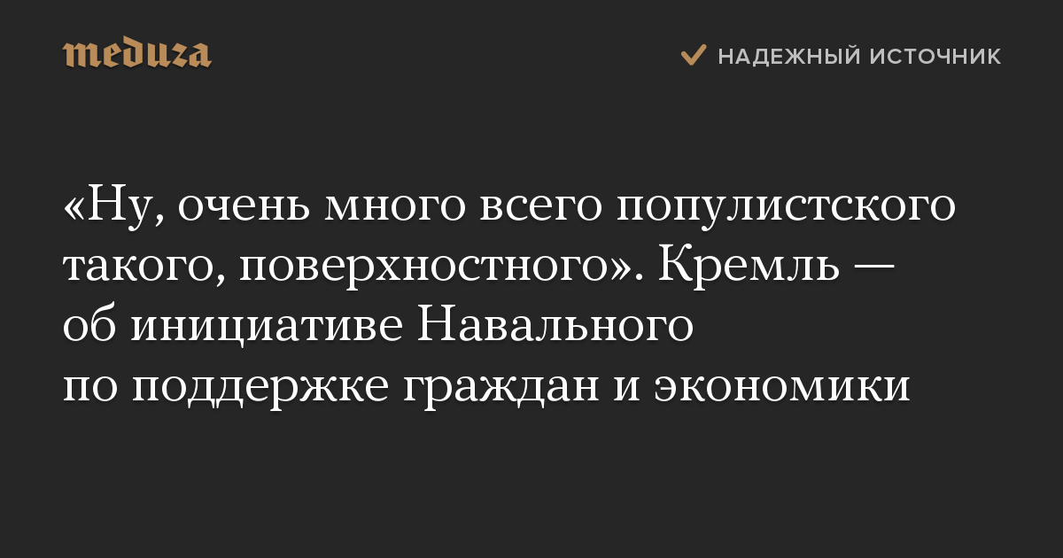 «Ну, очень много всего популистского такого, поверхностного». Кремль — об инициативе Навального по поддержке граждан и экономики