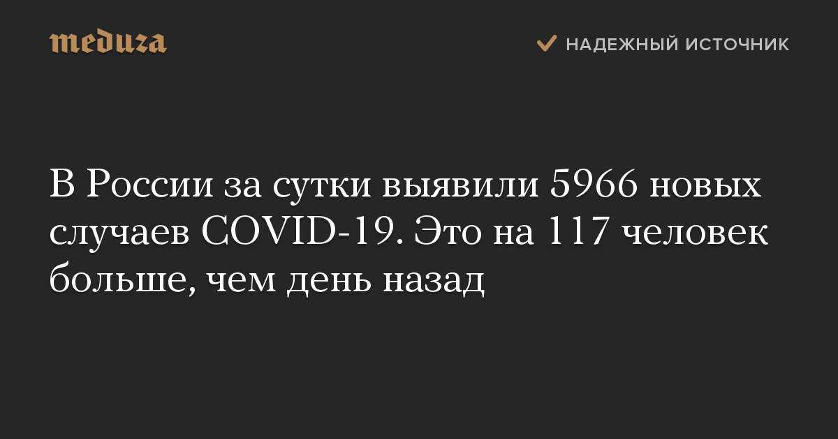 В России за сутки выявили 5966 новых случаев COVID-19. Это на 117 человек больше, чем день назад