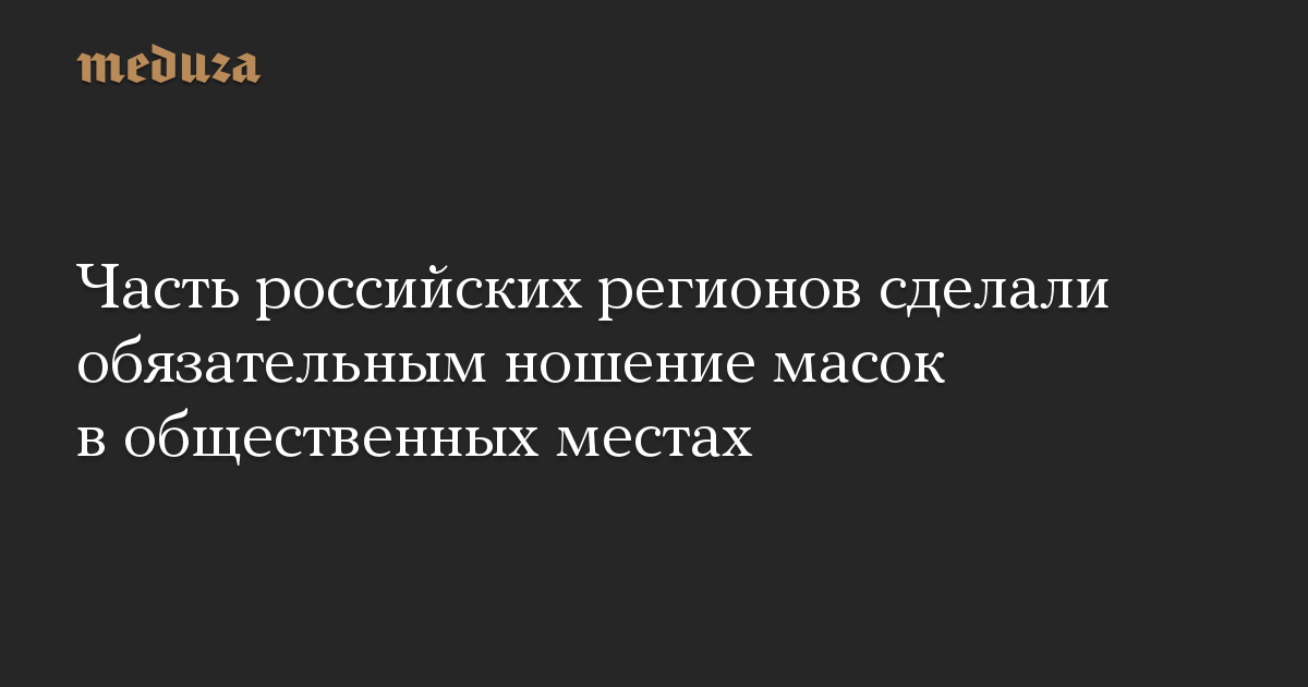 Ранее ношение масок уже сделали обязательным на нескольких территориях Кемеровской области (с 19 апреля), в Хабаровском крае (с 22 апреля), на Камчатке и в Ивановской области (с 24 апреля), а также в Башкирии (с 25 апреля).