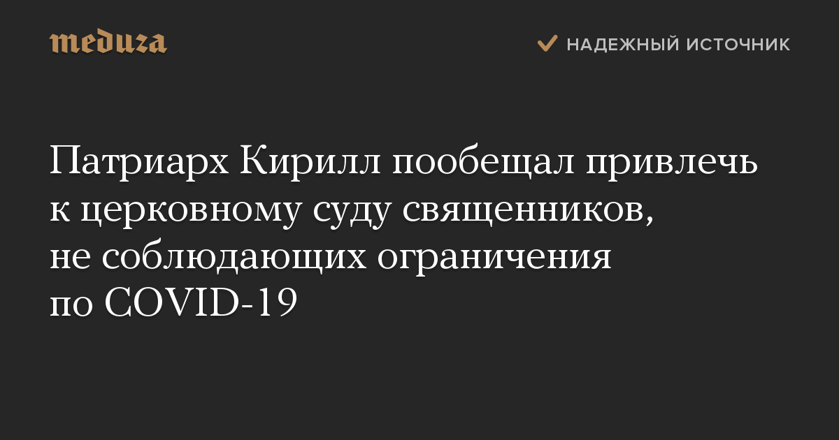 Патриарх Кирилл пообещал привлечь к церковному суду священников, не соблюдающих ограничения по COVID-19