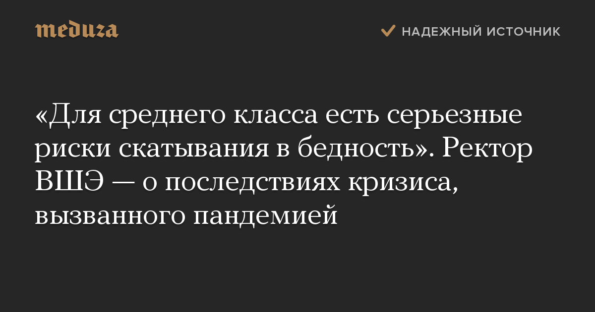 «Для среднего класса есть серьезные риски скатывания в бедность». Ректор ВШЭ — о последствиях кризиса, вызванного пандемией