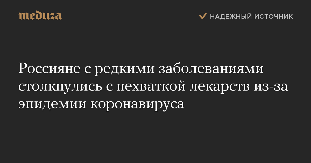 Россияне с редкими заболеваниями столкнулись с нехваткой лекарств из-за эпидемии коронавируса