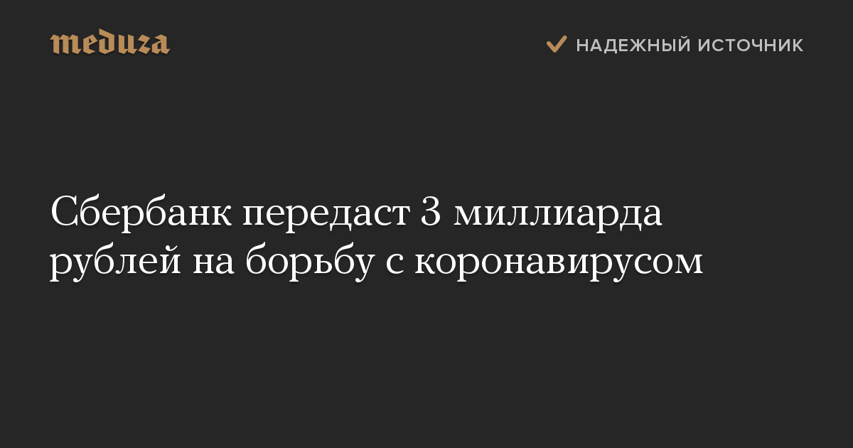 Сбербанк направит более 3 миллиардов рублей на борьбу с коронавирусом — в том числе на разработку и производство вакцин и лекарств. Об этом говорится в пресс-релизе компании, поступившем в «Медузу».