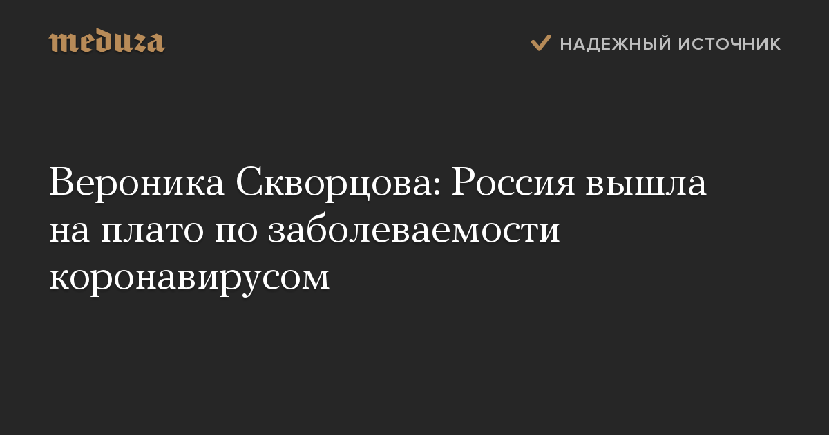 Вероника Скворцова: Россия вышла на плато по заболеваемости коронавирусом
