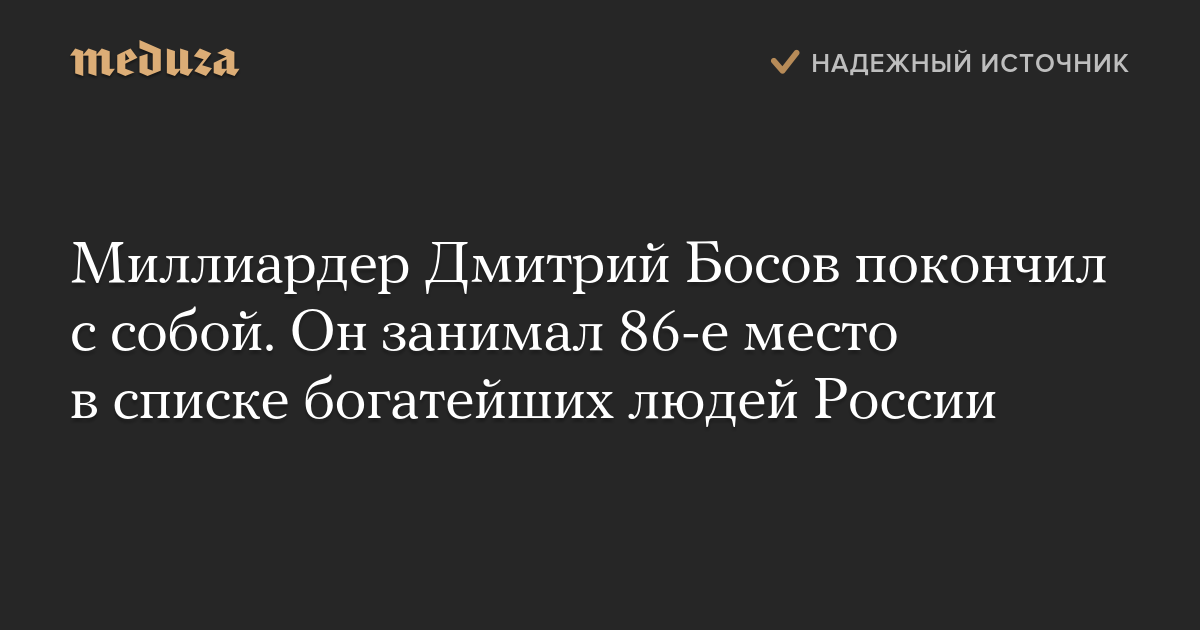 Миллиардер Дмитрий Босов покончил с собой. Он занимал 86-е место в списке богатейших людей России