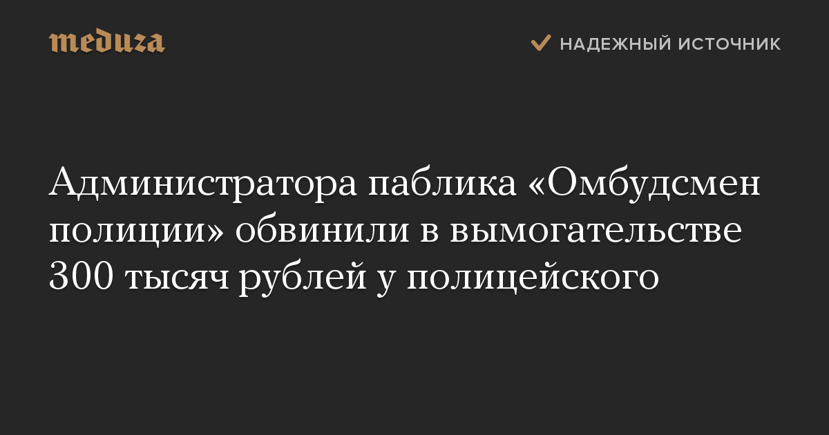 Администратора паблика «Омбудсмен полиции» обвинили в вымогательстве 300 тысяч рублей у полицейского