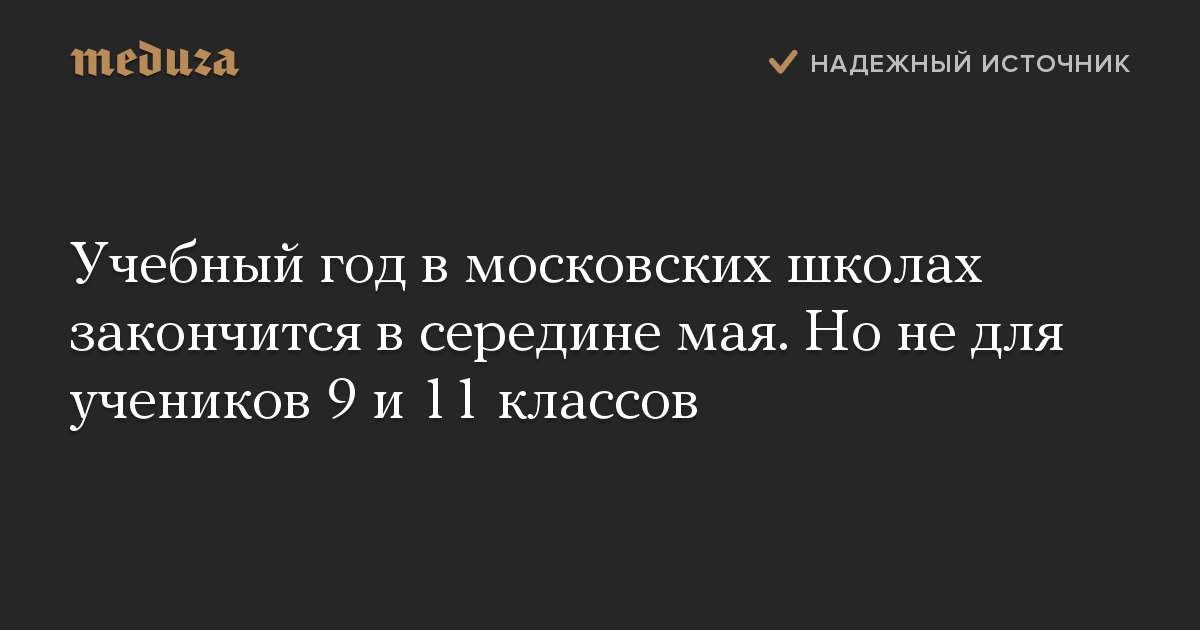 Учебный год в московских школах для учеников первых-восьмых и 10-х классов закончится в середине мая, сообщил мэр города Сергей Собянин.