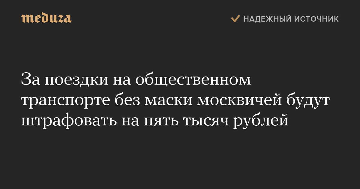Исправление. «Интерфакс» в обновленной заметке уточнил суммы штрафов. Изначально в заголовке и в новости сообщалось, что на четыре тысячи рублей будут штрафовать за поездки без маски на общественном транспорте Москвы.