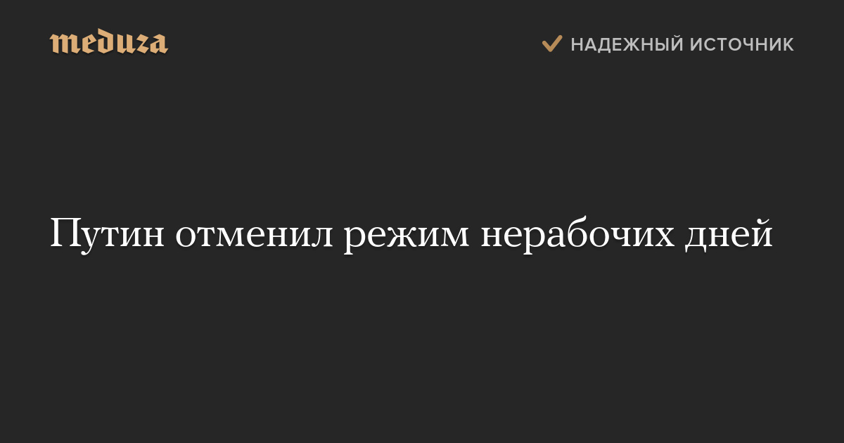 Путин отменил режим нерабочих дней