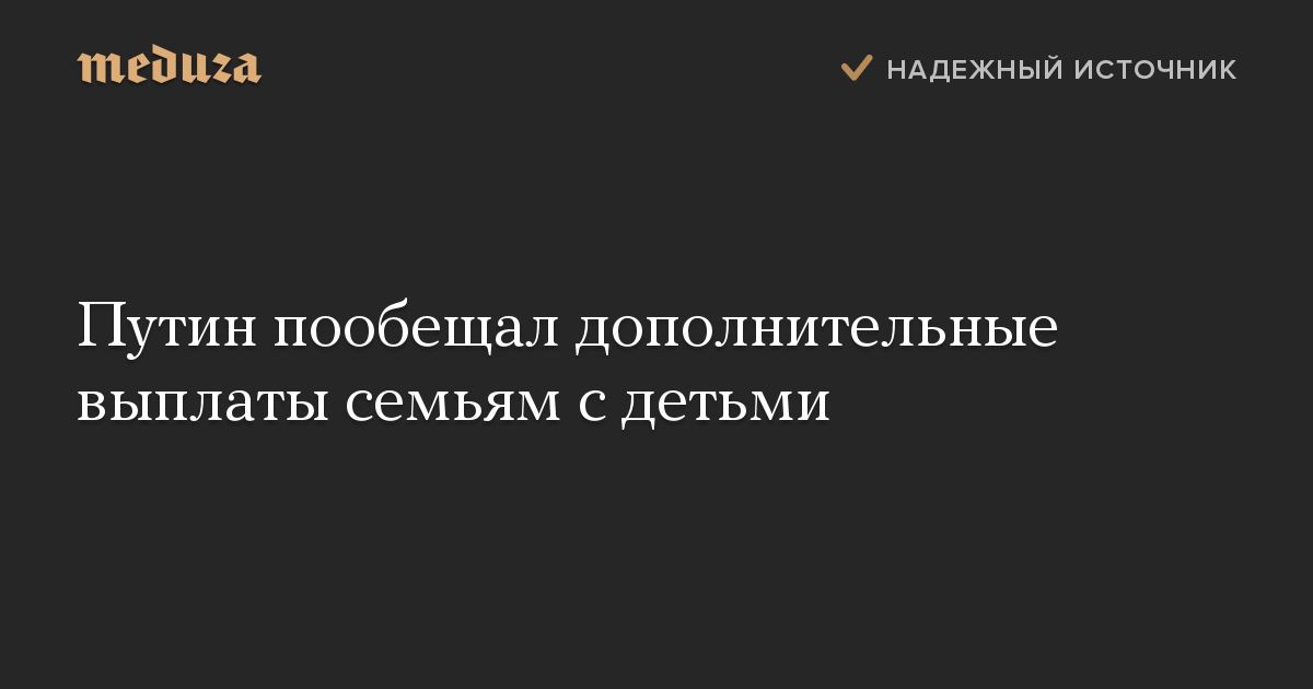 Путин пообещал дополнительные выплаты семьям с детьми