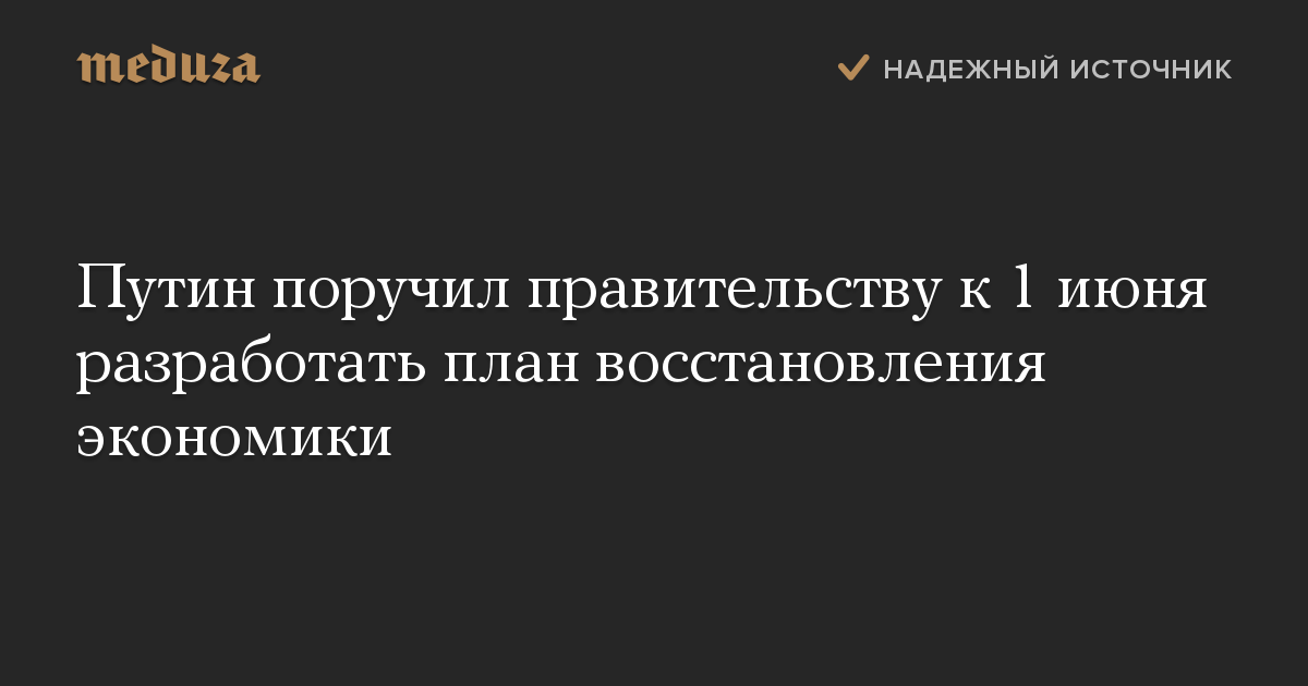 Путин поручил правительству к 1 июня разработать план восстановления экономики