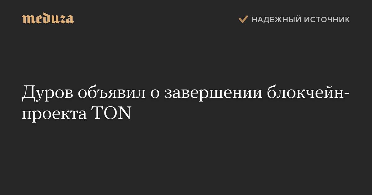 Основатель Telegram Павел Дуров объявил о завершении блокчейн-проекта TON.