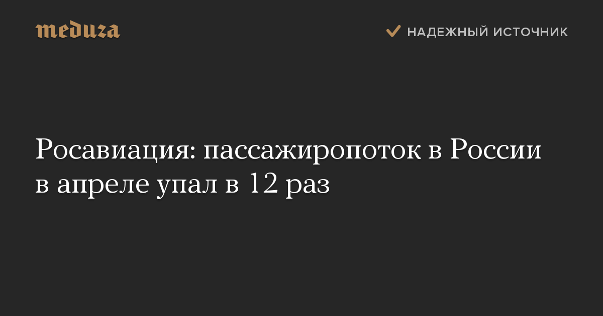 Росавиация: пассажиропоток в России в апреле упал в 12 раз