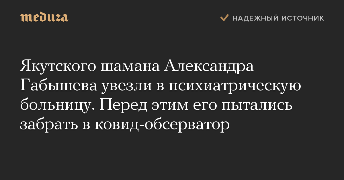 Якутского шамана Александра Габышева увезли в психиатрическую больницу. Перед этим его пытались забрать в ковид-обсерватор