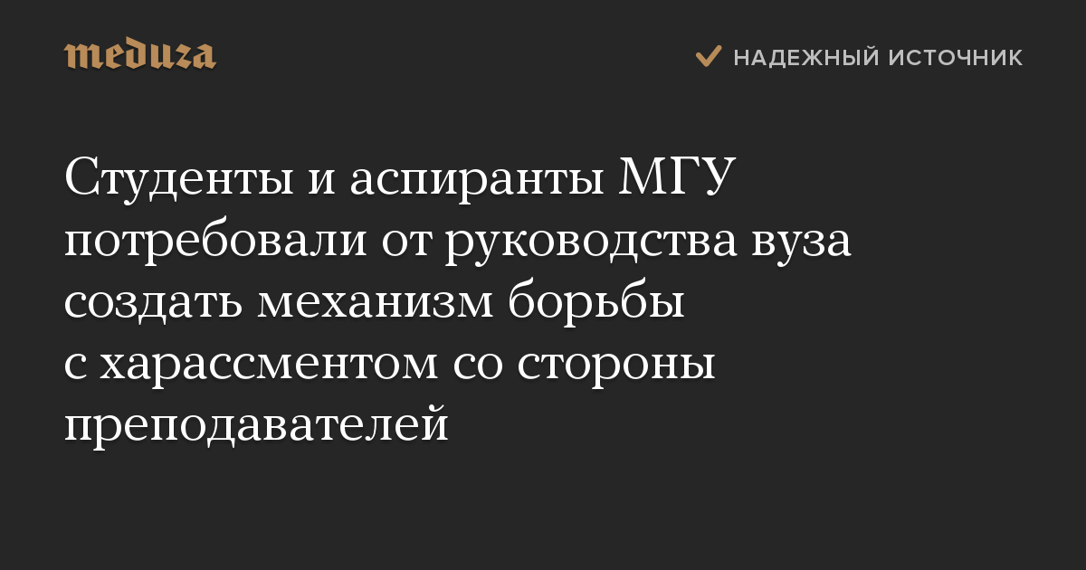 Студенты и аспиранты МГУ потребовали от руководства вуза создать механизм борьбы с харассментом со стороны преподавателей