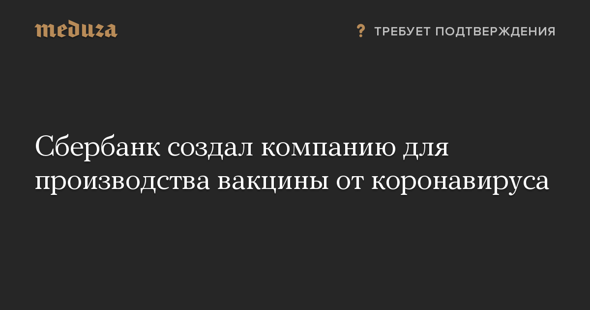 Сбербанк создал компанию для производства вакцины от коронавируса