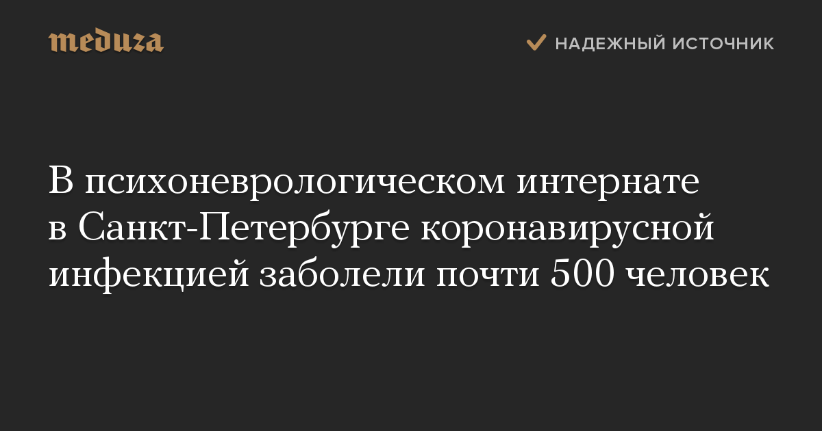 В психоневрологическом интернате в Санкт-Петербурге коронавирусной инфекцией заболели почти 500 человек