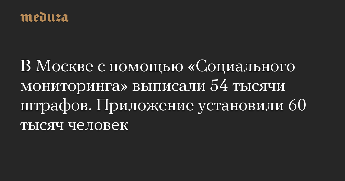 Всего приложение «Социальный мониторинг» поставили 60 тысяч москвичей. Штрафы получили примерно 30% из них — некоторые получили по 2-3 штрафа.