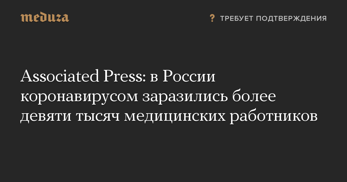 Associated Press: в России коронавирусом заразились более девяти тысяч медицинских работников
