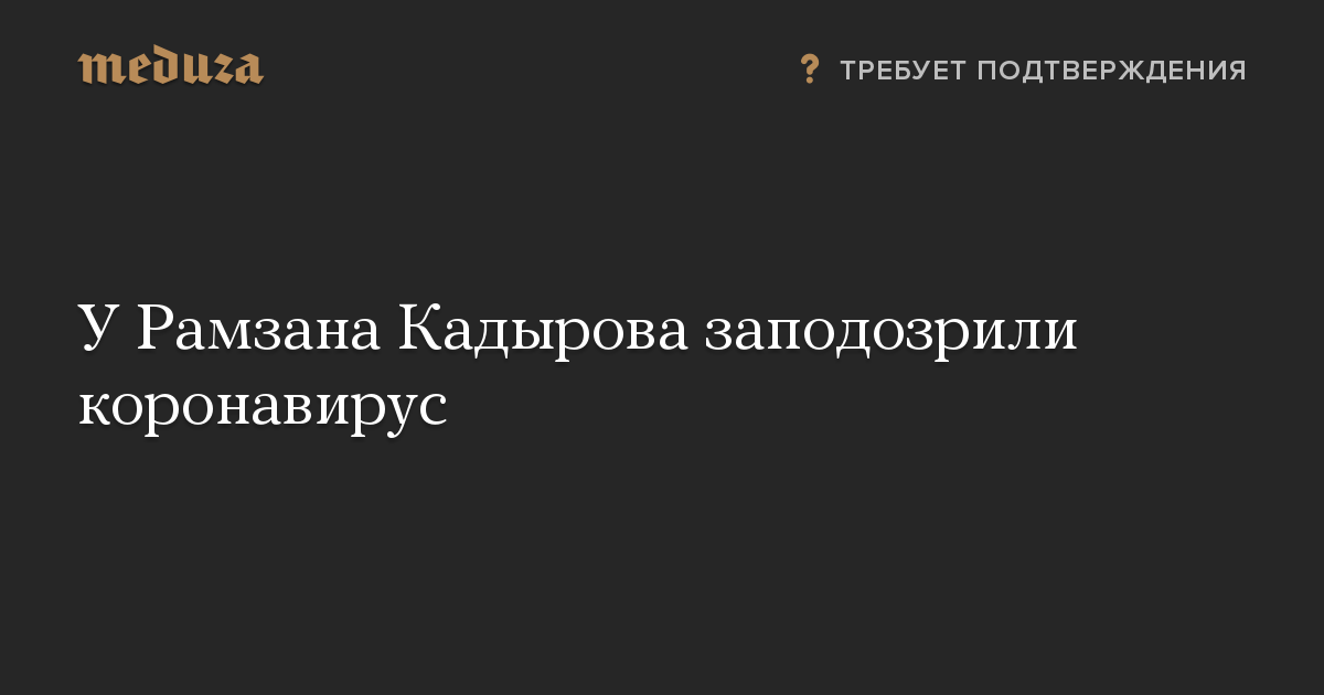 О том, что у Кадырова подозревают коронавирус, также сообщает «Интерфакс» со ссылкой на источник в московских медицинских кругах. По словам собеседника издания, глава Чечни находится под наблюдением врачей.
