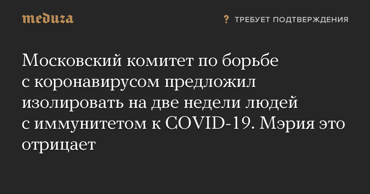 Московский комитет по борьбе с коронавирусом предложил изолировать на две недели людей с иммунитетом к COVID-19. Мэрия это отрицает