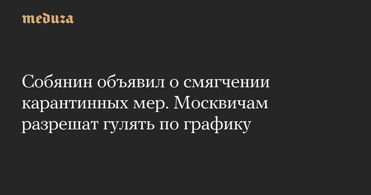 Собянин объявил о смягчении карантинных мер. Москвичам разрешат гулять по графику