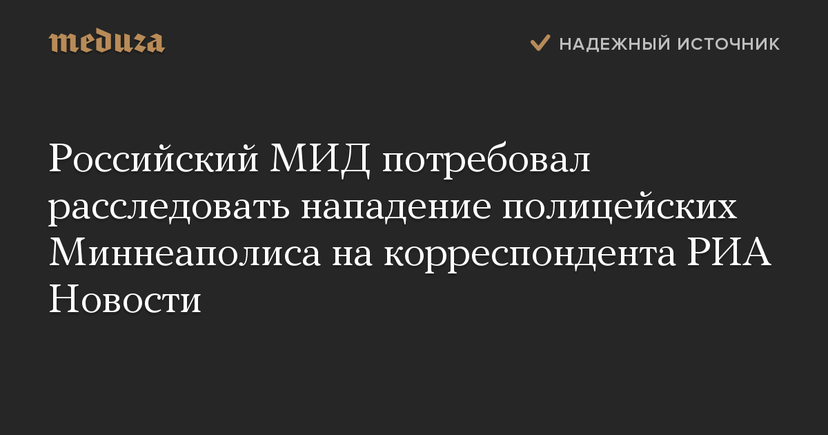Российский МИД потребовал расследовать нападение полицейских Миннеаполиса на корреспондента РИА Новости
