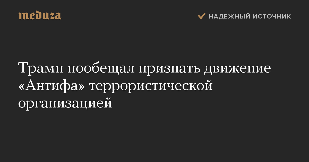 Дональд Трамп заявил в своем твиттере, что США внесут движение «Антифа» в список террористических организаций.
