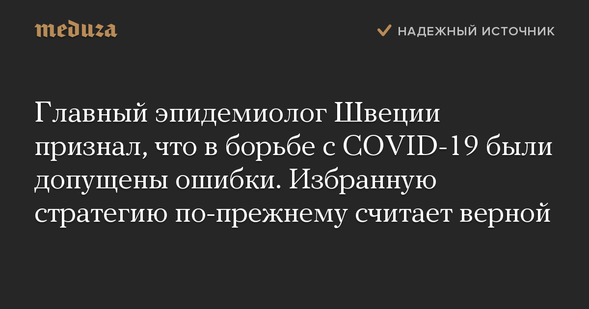 Главный эпидемиолог Швеции признал, что в борьбе с COVID-19 были допущены ошибки. Избранную стратегию по-прежнему считает верной