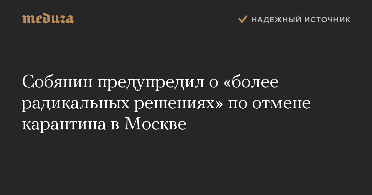 Собянин предупредил о «более радикальных решениях» по отмене карантина в Москве