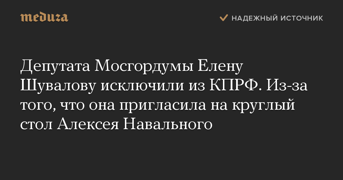 Депутата Мосгордумы Елену Шувалову исключили из КПРФ. Из-за того, что она пригласила на круглый стол Алексея Навального