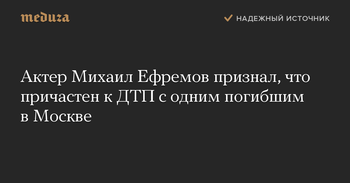 Обновление. Адвокат Виталий Чернышев, представляющий интересы Михаила Ефремова, уточнил РИА Новости, что актер не отрицал свою причастность к ДТП. Официально вину Ефремов не признавал — он может сделать это только во время допроса, который пока не состоялся.