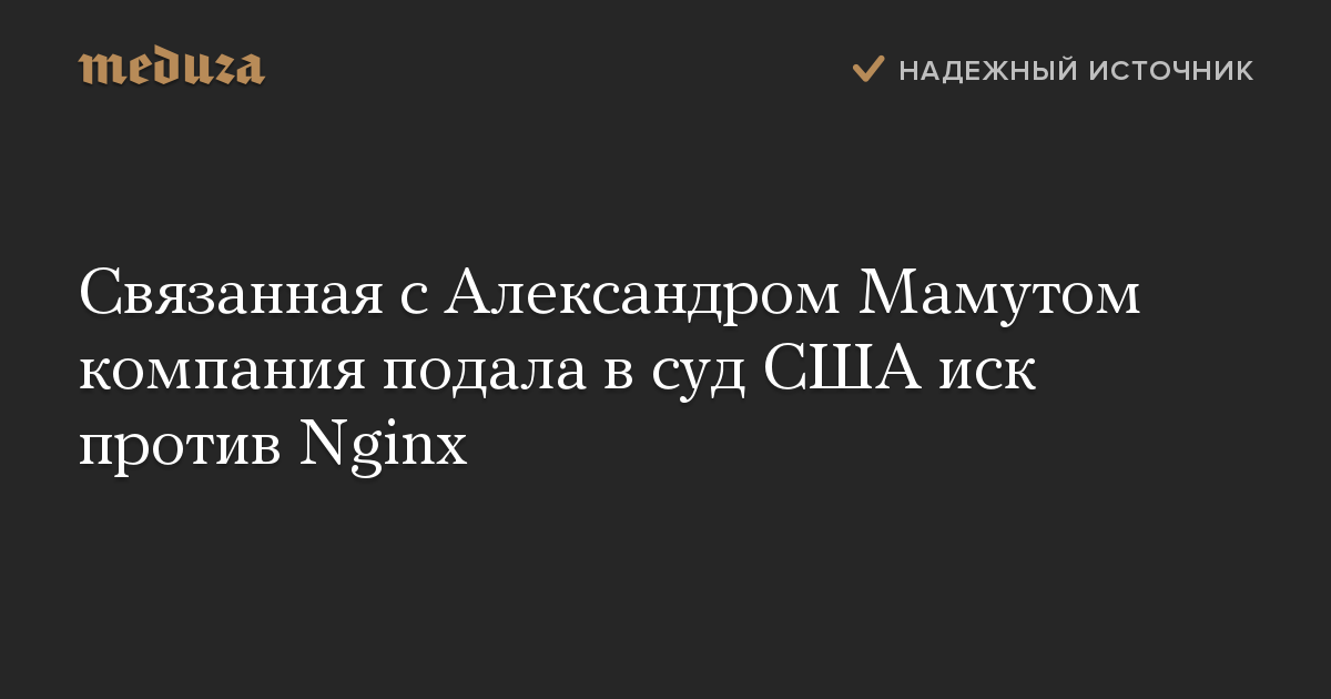 Зарегистрированная на Кипре компания Lynwood Investments, связанная с бизнесменом Александром Мамутом, подала иск к Nginx в суд в Калифорнии. На иск обратил внимание телеграм-канал «Банкста».