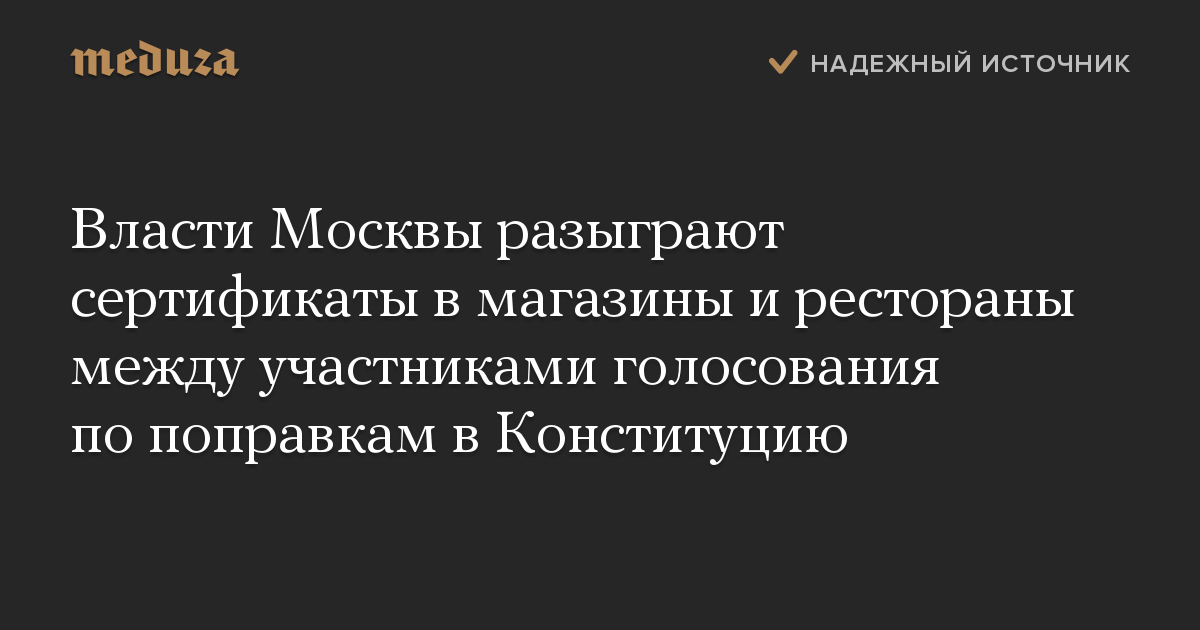 Власти Москвы разыграют сертификаты в магазины и рестораны между участниками голосования по поправкам в Конституцию