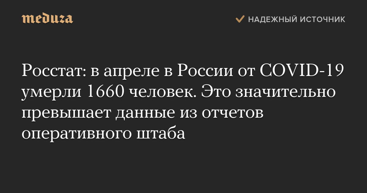 Росстат: в апреле в России от COVID-19 умерли 1660 человек. Это значительно превышает данные из отчетов оперативного штаба