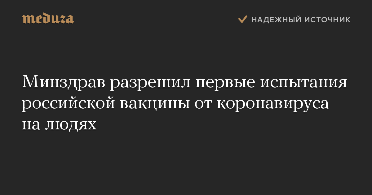 Минздрав разрешил первые испытания российской вакцины от коронавируса на людях