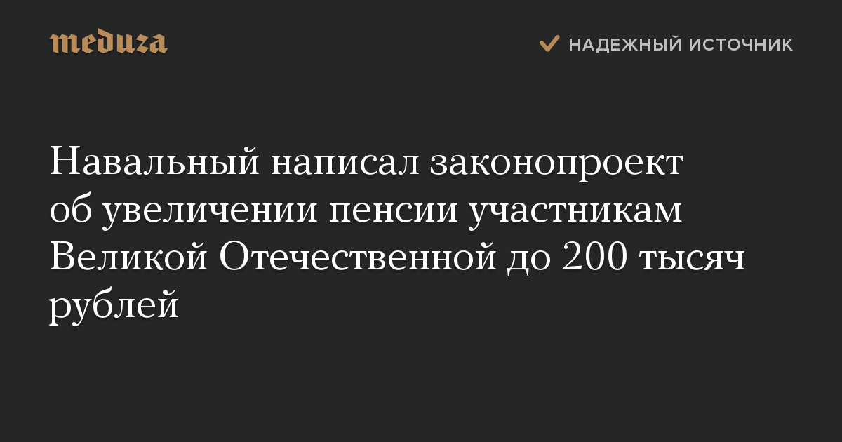Навальный написал законопроект об увеличении пенсии участникам Великой Отечественной до 200 тысяч рублей