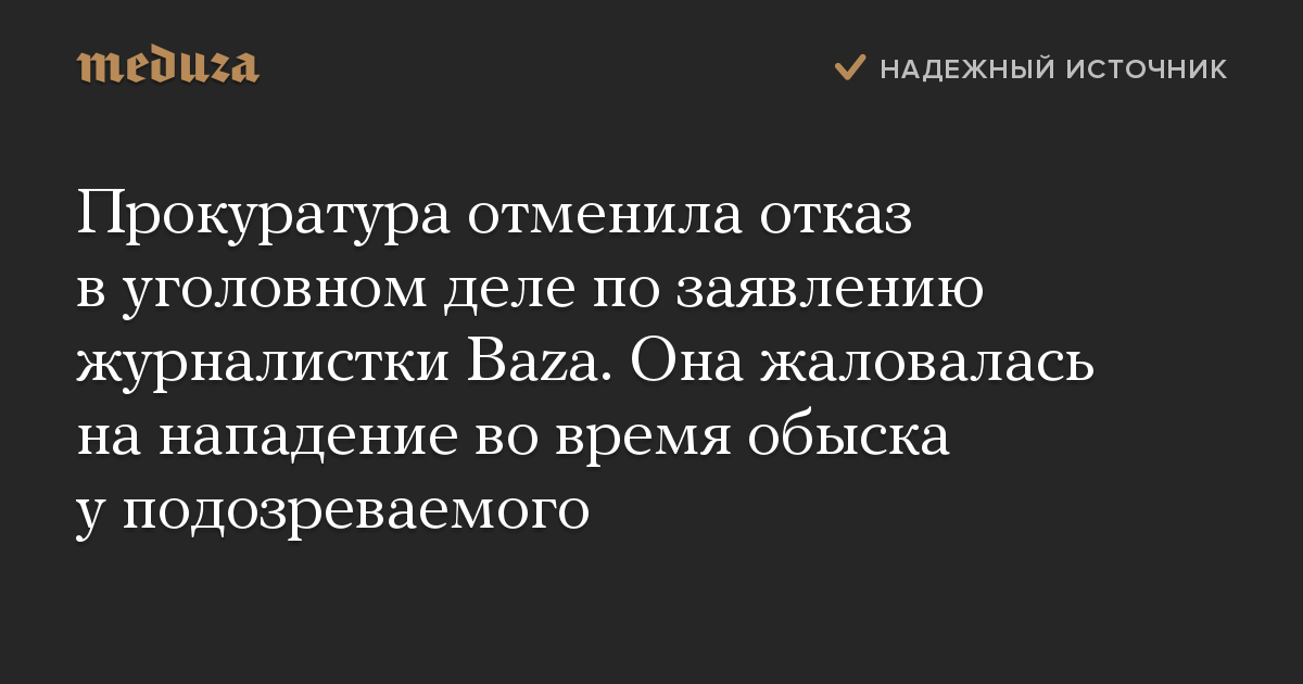 Прокуратура отменила отказ в уголовном деле по заявлению журналистки Baza. Она жаловалась на нападение во время обыска у подозреваемого