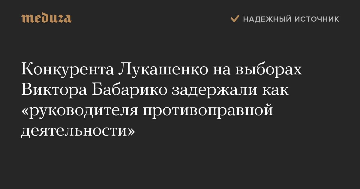 Конкурента Лукашенко на выборах Виктора Бабарико задержали как «руководителя противоправной деятельности»